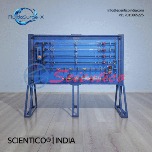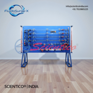 The Pipe Surge and Water Hammer Apparatus | FluidoSurge-X 324 by SCIENTICO is a laboratory system for studying transient flow effects in pipelines. It enables investigation of pipe surge and water hammer using stainless steel test pipes, surge tank, and pressure transducers. The system includes an oscilloscope for observing pressure waves and operates with a constant head water supply. Suitable for fluid mechanics and hydraulic engineering laboratories.