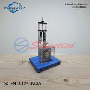 The Reciprocating Pump Demonstration Unit | FluidoSurge-X 264 by SCIENTICO is a laboratory apparatus for studying reciprocating pump performance and pressure behavior. It enables measurement of pump characteristic curves, delivery pressure, and cylinder pressure. The unit includes provisions for pulsation damping and volumetric flow measurement. Suitable for fluid mechanics and hydraulic machinery teaching laboratories.