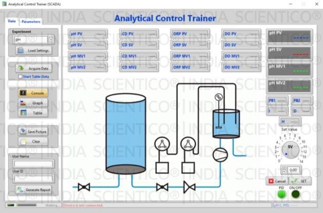 Analytical process control is an essential aspect of modern industrial operations where chemical properties must be continuously monitored and adjusted to maintain product quality and process efficiency. The Analytical Process Control Trainer replicates these industrial control scenarios in a laboratory-scale environment.