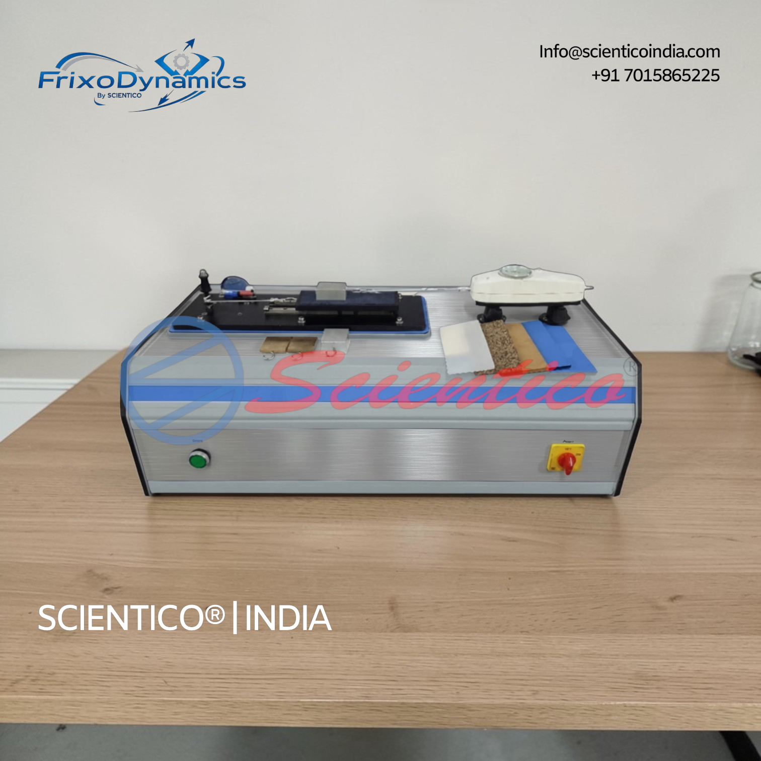 The FX-527 is used to investigate the factors governing dry friction between solid bodies in contact — specifically the effects of normal force, sliding velocity, material pairing, surface roughness, and contact area on the friction force and coefficient of friction. A motorised carriage drives the support surface at two constant velocities beneath a stationary friction body connected to a precision force gauge, allowing both static and dynamic friction to be measured under controlled and repeatable conditions.
