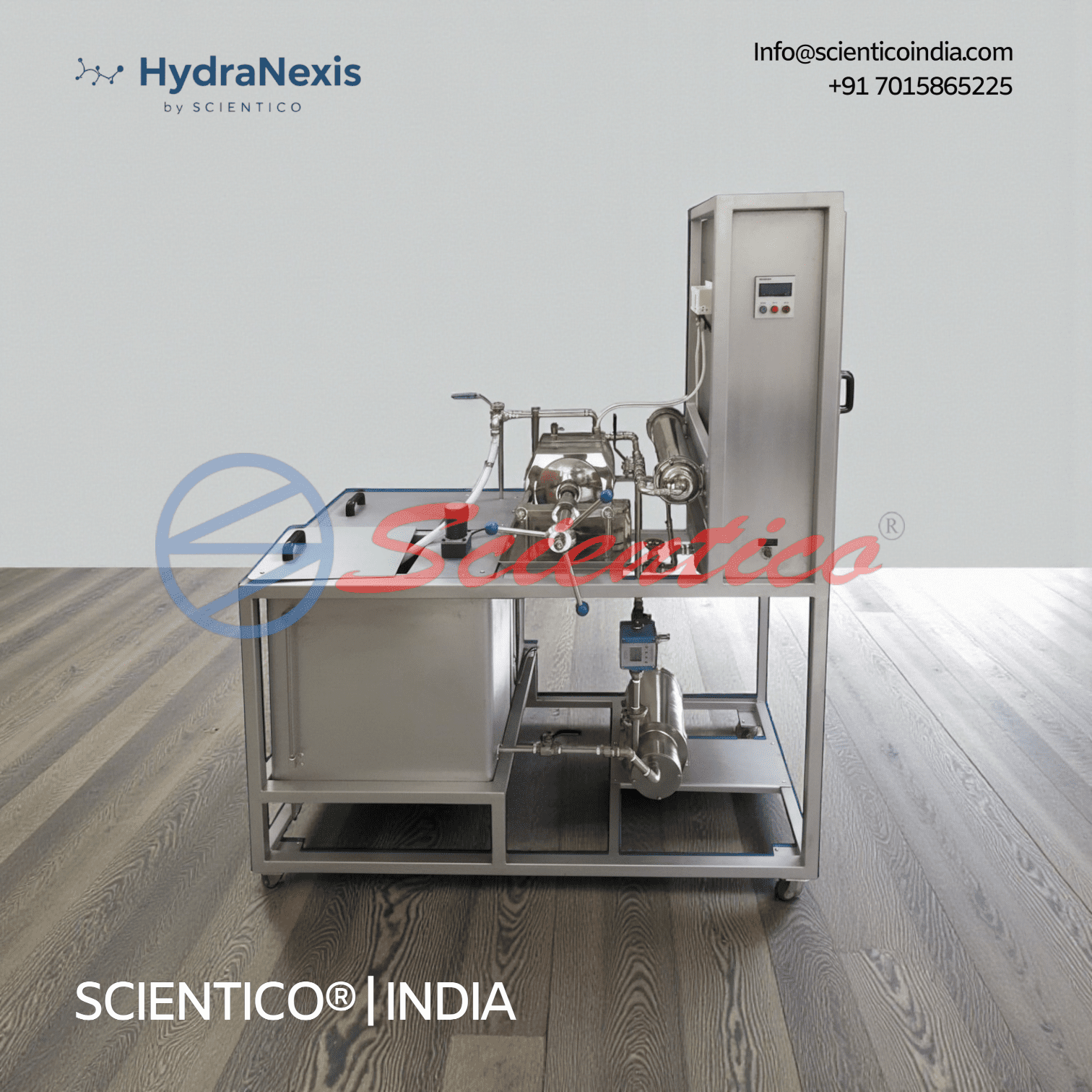 Equipped with plate heat exchanger, heating and cooling systems, peristaltic pumps, multi-parameter sensors, and integrated DAQ software, the system enables realistic training in industrial automation and process control. Manufactured by SCIENTICO, it is suitable for engineering institutions and export-oriented technical training centers.