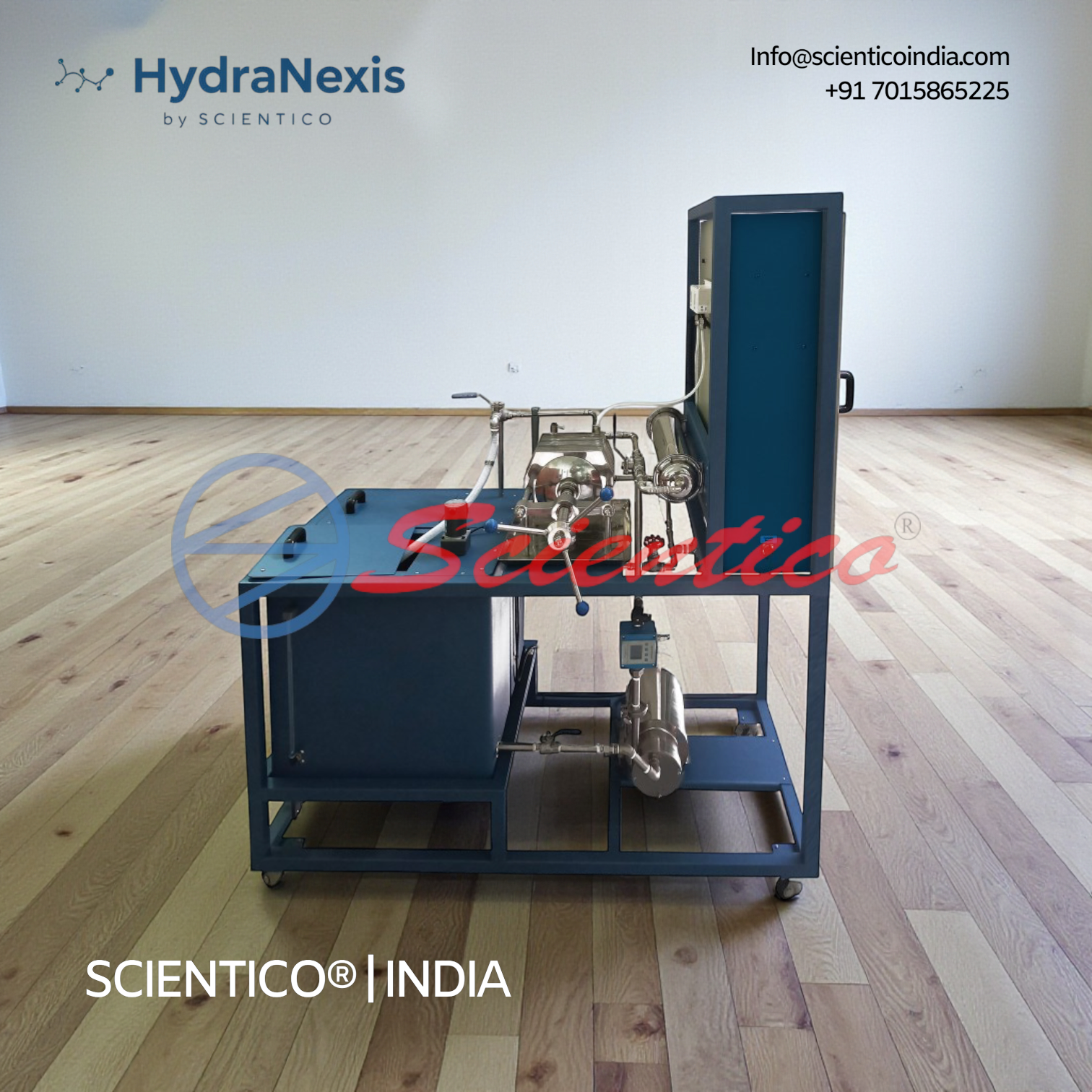 The SCIENTICO FluidoSurgeX 104 Hydraulic Bench is designed for studying centrifugal pump performance in fluid mechanics laboratories.