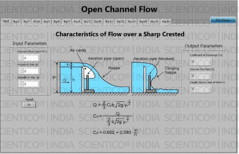 • Closed water circuit: 100 L sump tank, rotameter 0.8 to 70 LPM, manual flow adjustment