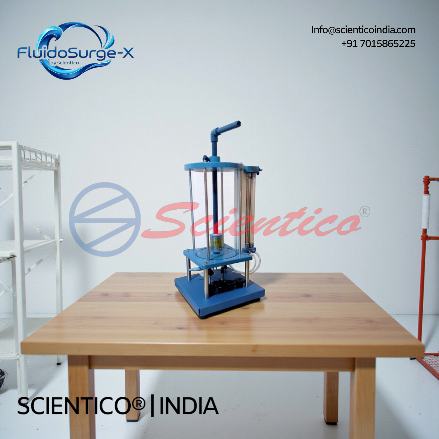 The Water Hammer Apparatus | FluidoSurge-X 250 by SCIENTICO is a laboratory unit for demonstrating and studying the water hammer phenomenon in pipelines. It allows visualization of pressure surges using transparent piping and controlled flow interruption. The apparatus includes surge pipes of different diameters to study mitigation effects. Suitable for fluid mechanics and hydraulic engineering teaching laboratories.