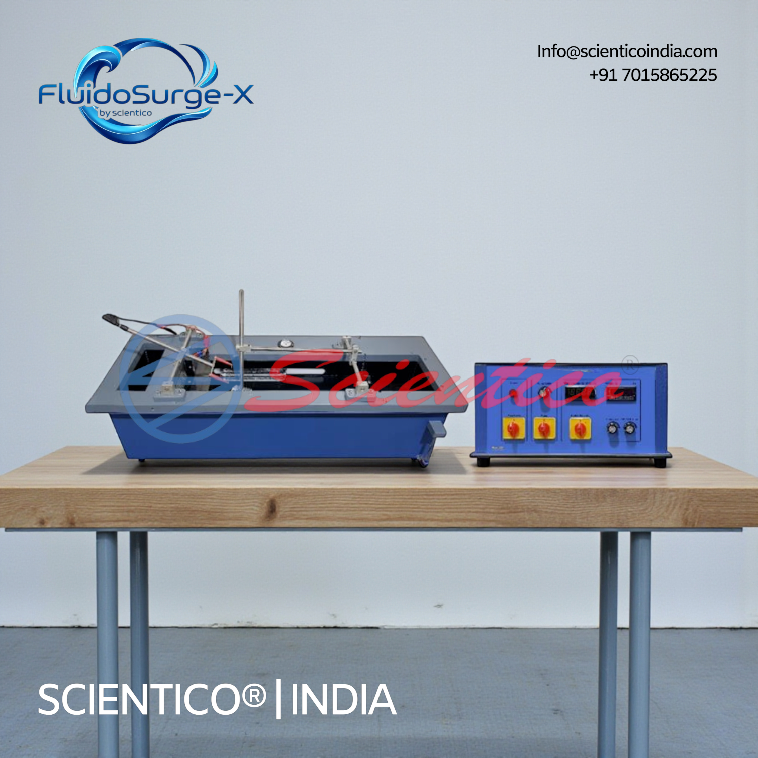 The Water Hammer Apparatus | FluidoSurge-X 250 by SCIENTICO is a laboratory unit for demonstrating and studying the water hammer phenomenon in pipelines. It allows visualization of pressure surges using transparent piping and controlled flow interruption. The apparatus includes surge pipes of different diameters to study mitigation effects. Suitable for fluid mechanics and hydraulic engineering teaching laboratories.